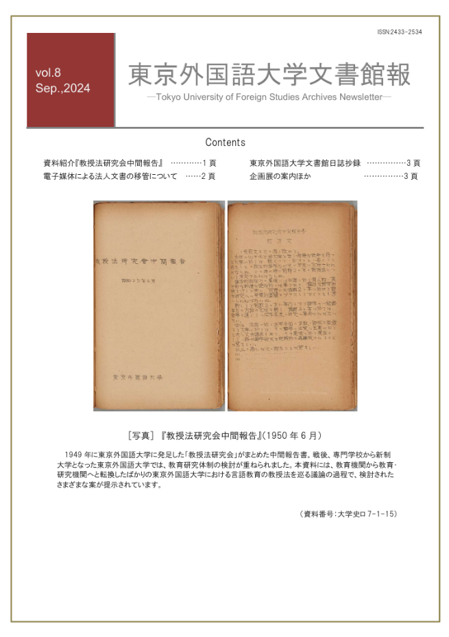 | 東京外国語大学文書館報 第8号 2024年 9月 4日発行 |