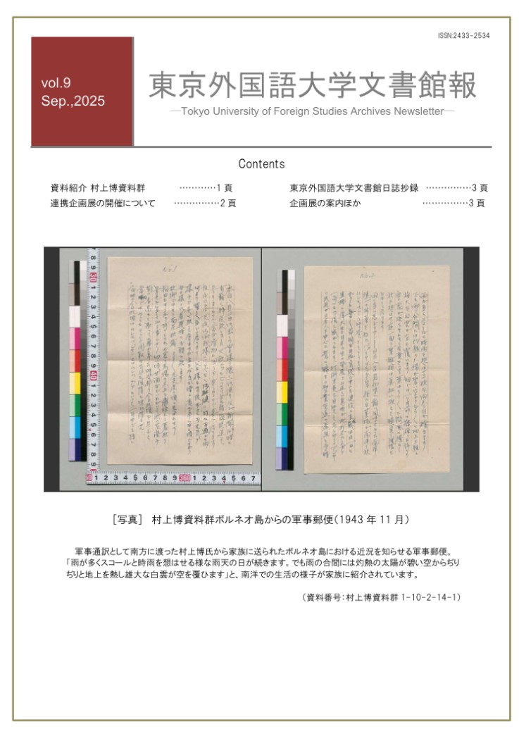 | 東京外国語大学文書館報 第9号 2025年 9月 5日発行 |