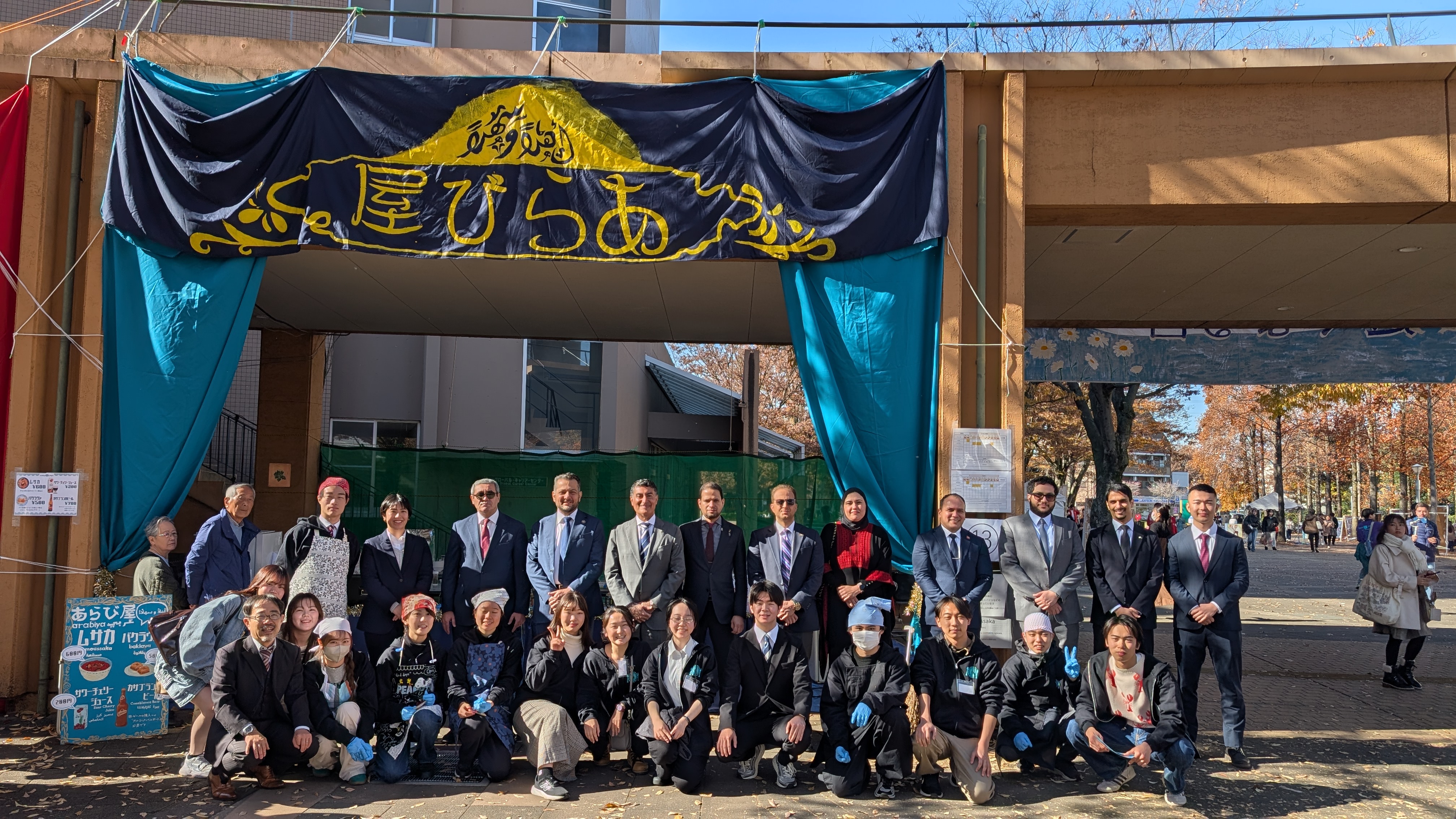 本学アラビア語専攻の学生が、アラブ諸国9カ国の大使館を訪問し、外語祭で行われるアラビア語劇への招待状を手渡ししました。招待状を受けて、11/22に行われたアラビア語劇に、9カ国の大使らが来場されました。https://t.co/z1wZ2qagoF pic.twitter.com/flXjMYVP77