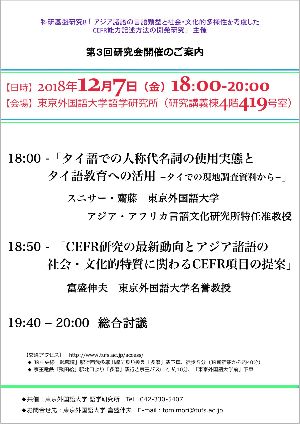 会場:東京外国語大学 語学研究所(府中キャンパス研究講義棟4階419号室)
