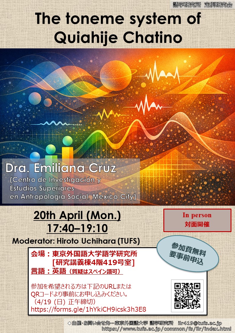 会場:語学研究所(東京外国語大学研究講義棟4階419号室)