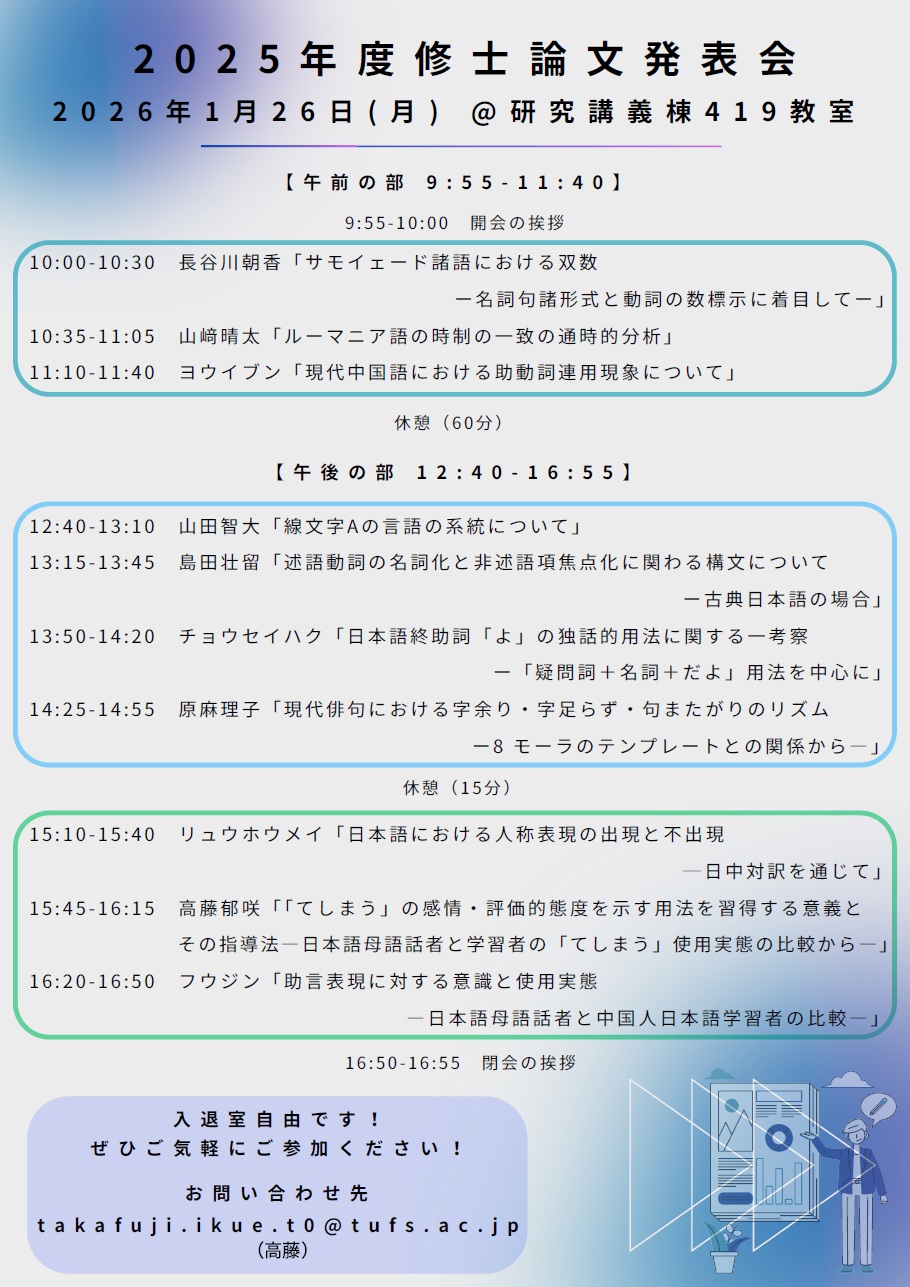 学内限定発表会語学研究所主催「修士論文発表会」