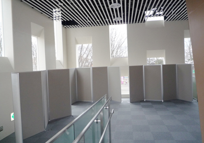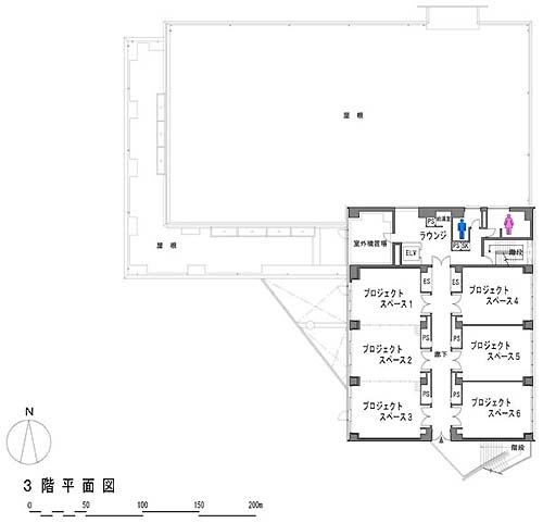 | 西側には、スライディングウォールにより1〜3室として利用出来るフレキシブルなスペースを設置し、東側には、固定間仕切りにより仕切られた3室があり、プロジェクトによる研究のスペースとして用意された。 | ||||