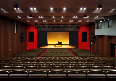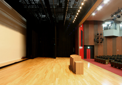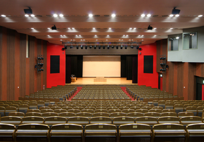 | 概 要 収容人員 : 501人+車椅子スペース3 面 積 : 客席部 約400u ステージ部 約200u 舞台設備 : 舞台吊物機構装置、舞台照明、舞台音響・映像、同時通訳装置(同時通訳室×1カ所 同時通訳ブース×2カ所) 操 作 室 : 照明調整室、音響調整室 |