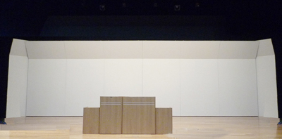 語劇等に配慮し、ステージの奥行きを広く取ってある。 8.4m(緞帳→ホリゾント幕) |