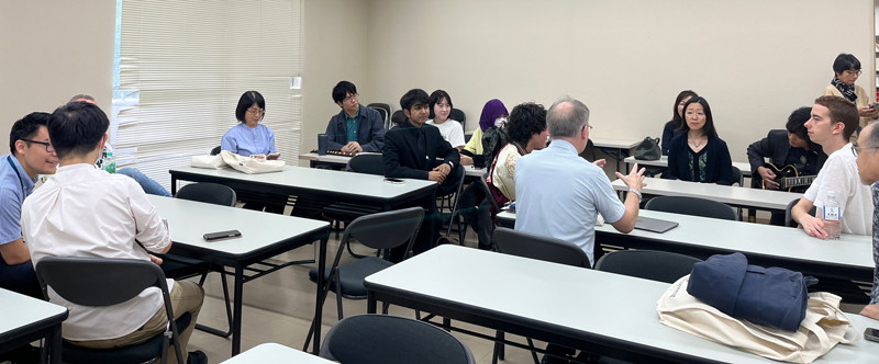 当日は2グループに分かれ、CD、エレキギター、ドラムスティック、中央アジアの伝統楽器、バンドのグッズ、レコードなど多彩な持参品が紹介され、音楽へのこだわりや思いを語り合う活発な意見交換の場となりました。