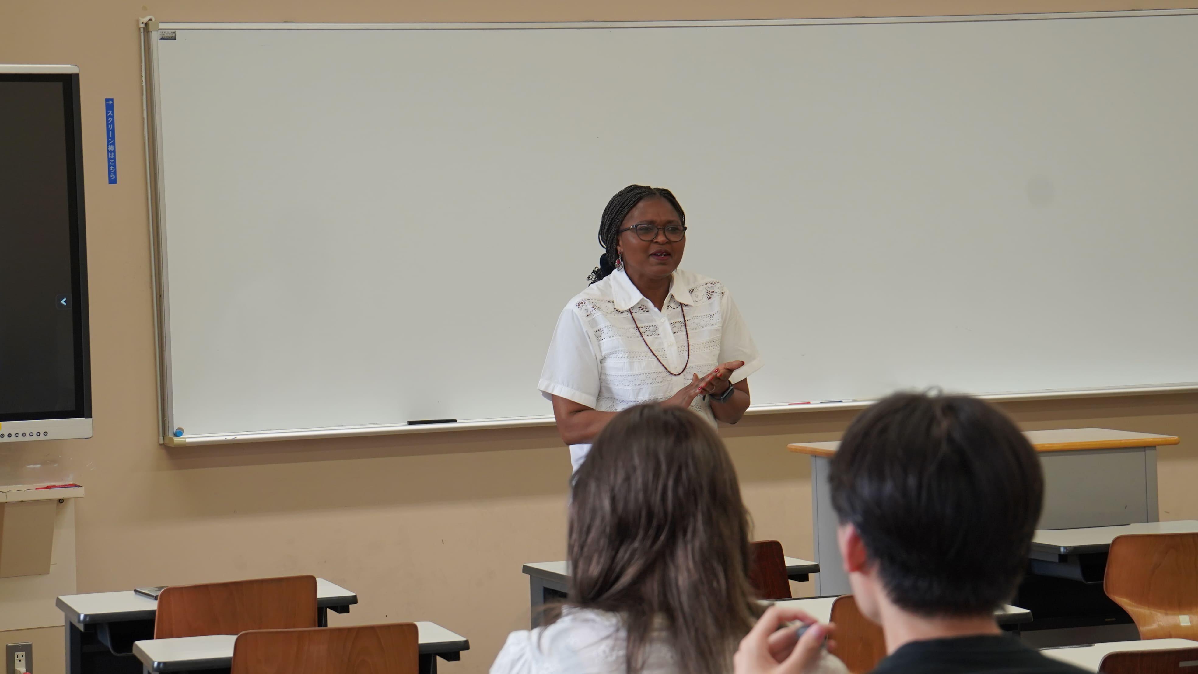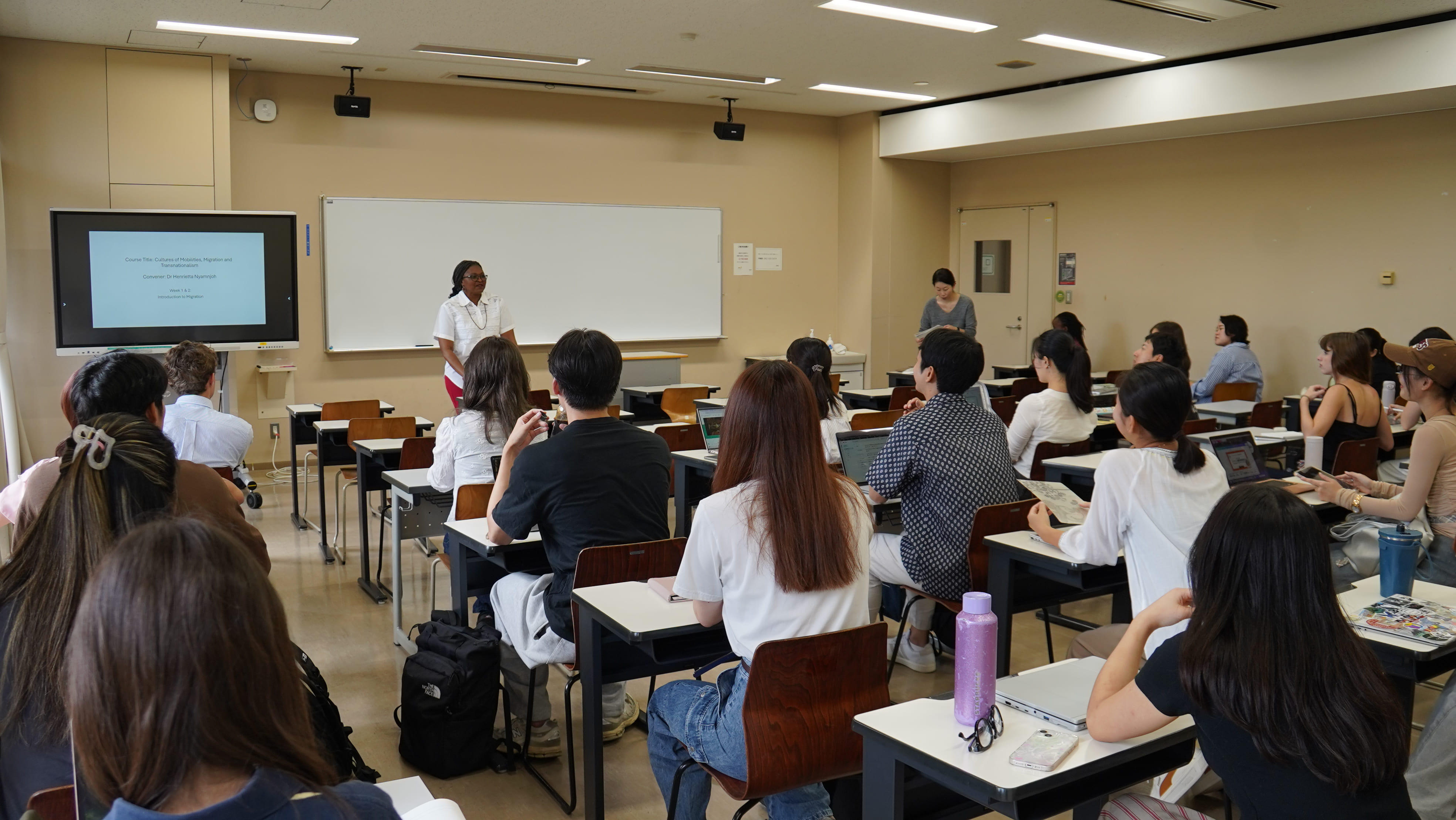 ヘンリエッタ・ニャムンジョ客員教授が受け持つ、国際社会学部の国際協力論2「モビリティ、移民、トランスナショナリズムの文化(Cultures of Mobilities, Migration and Transnationalism)」 の授業が9月30日(火)2限に始まりました。
