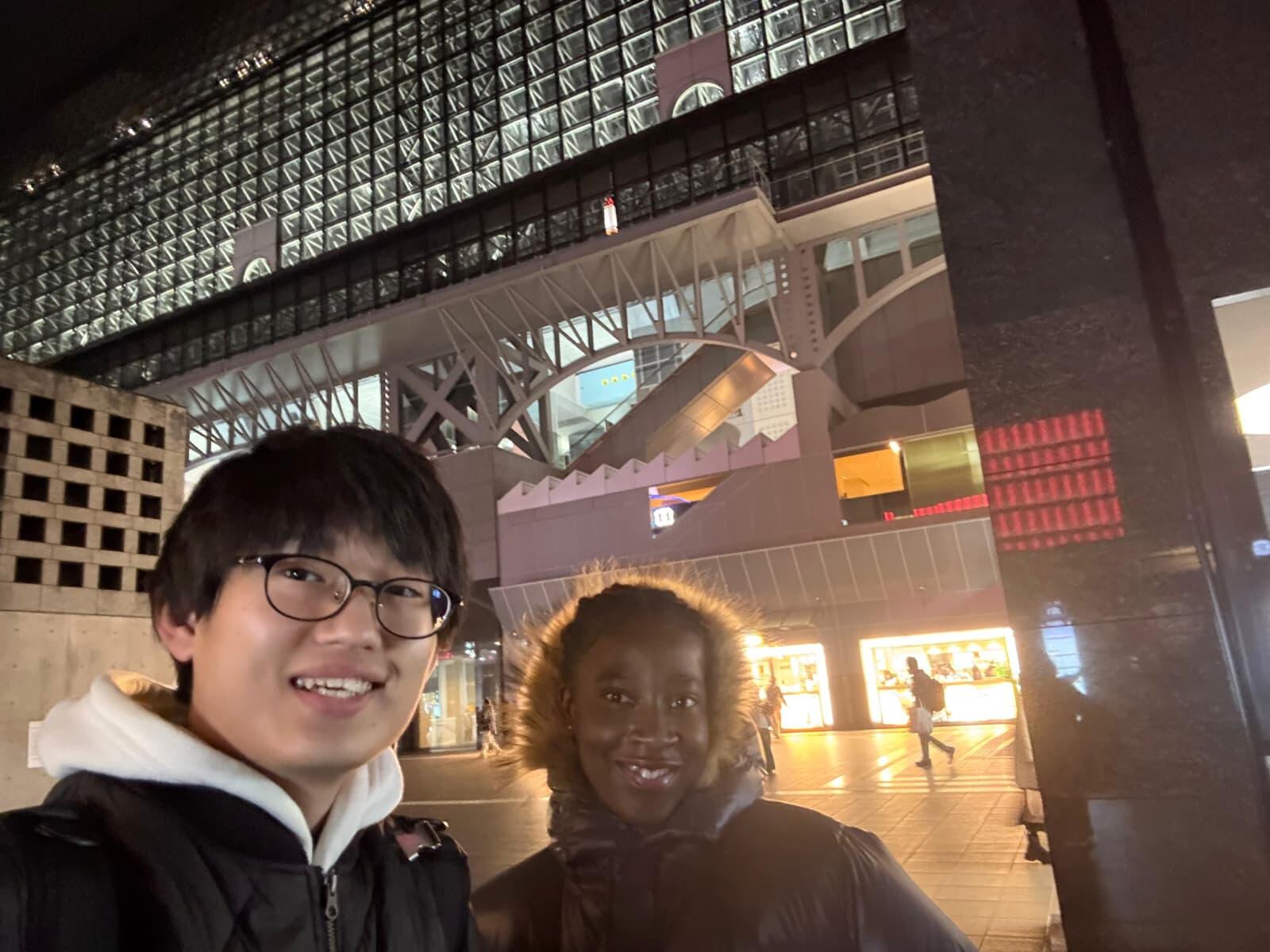 Aurelie, an exchange student, traveled to Kyoto together with Mr. Tanaka, a second-year student who is scheduled to study abroad at the University of Yaoundé I next academic year.