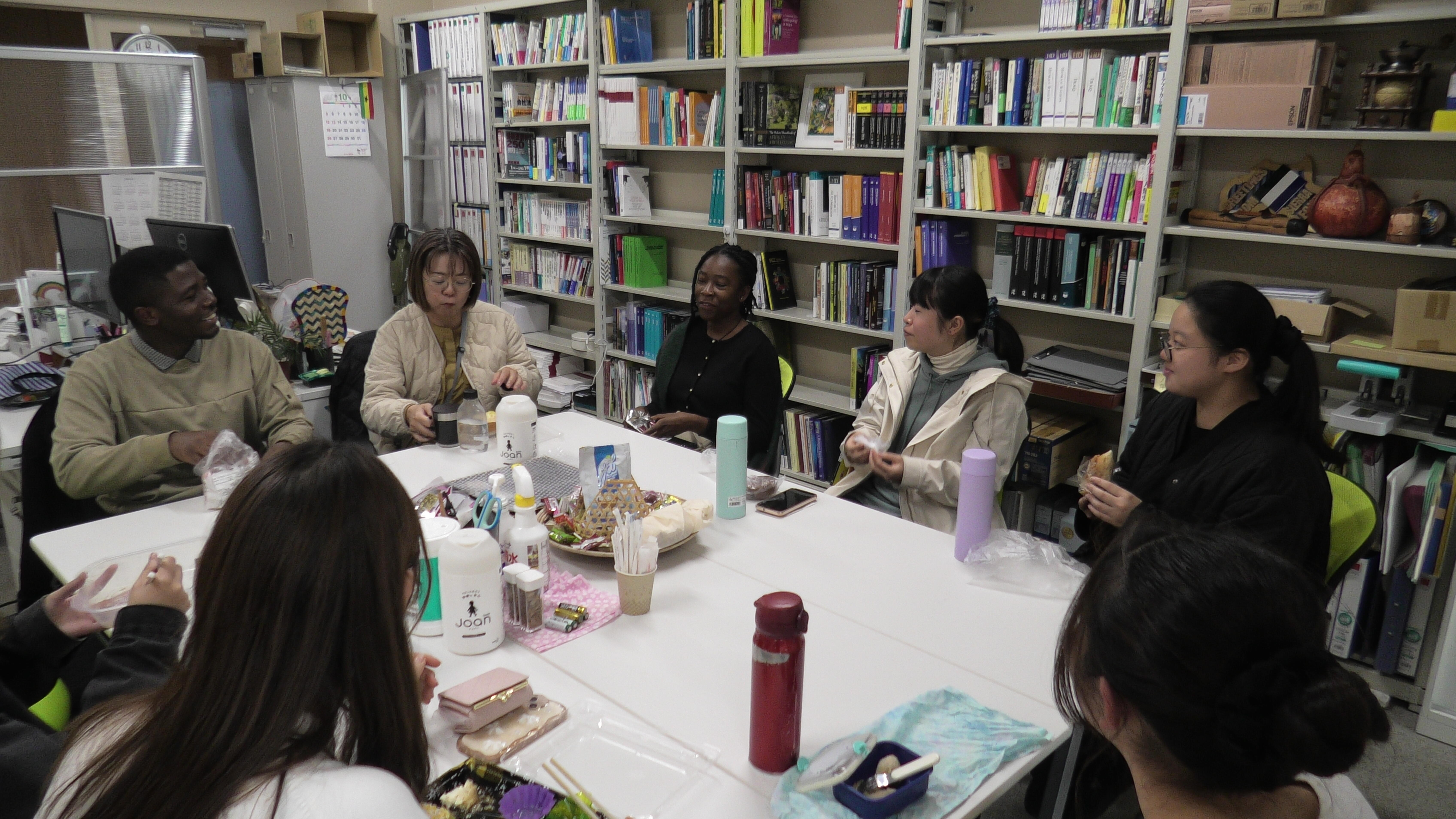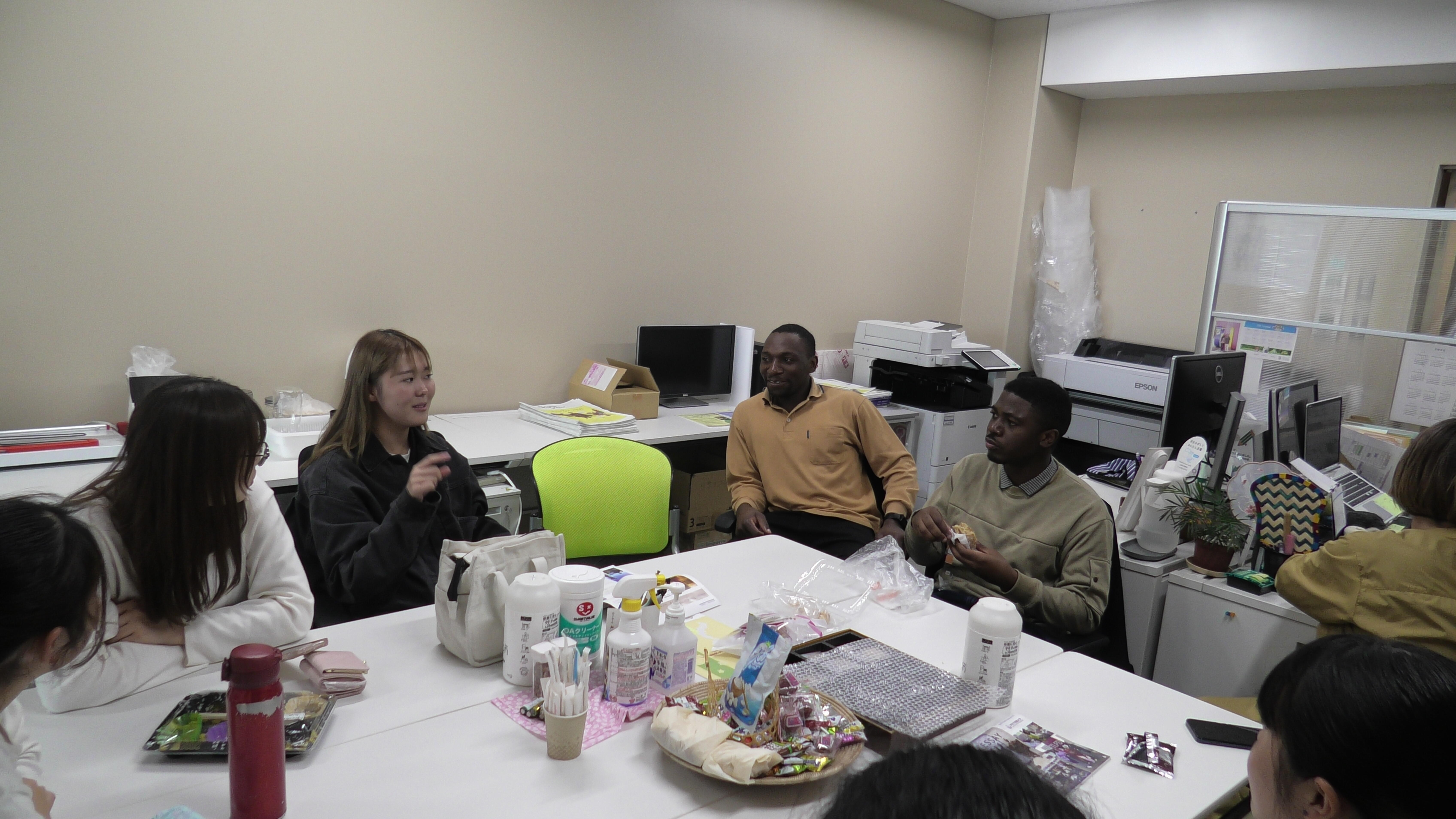 お知らせ 毎月一週目水曜開催のOpenLunch 2025年11月5日 【TUFS教職員&学生限定】現代アフリカ地域研究センターは、毎月第一水曜日のお昼休みにセンター(11:40~12:40)を開放しています! 11月のOpenLunchには、TUFS生、交換留学生のオーレリィさん、学部生のポールさん、ジャトさんが来てくれました。アフリカに興味のあるTUFS生、遠慮なくランチを持ってフラッとお寄りください。