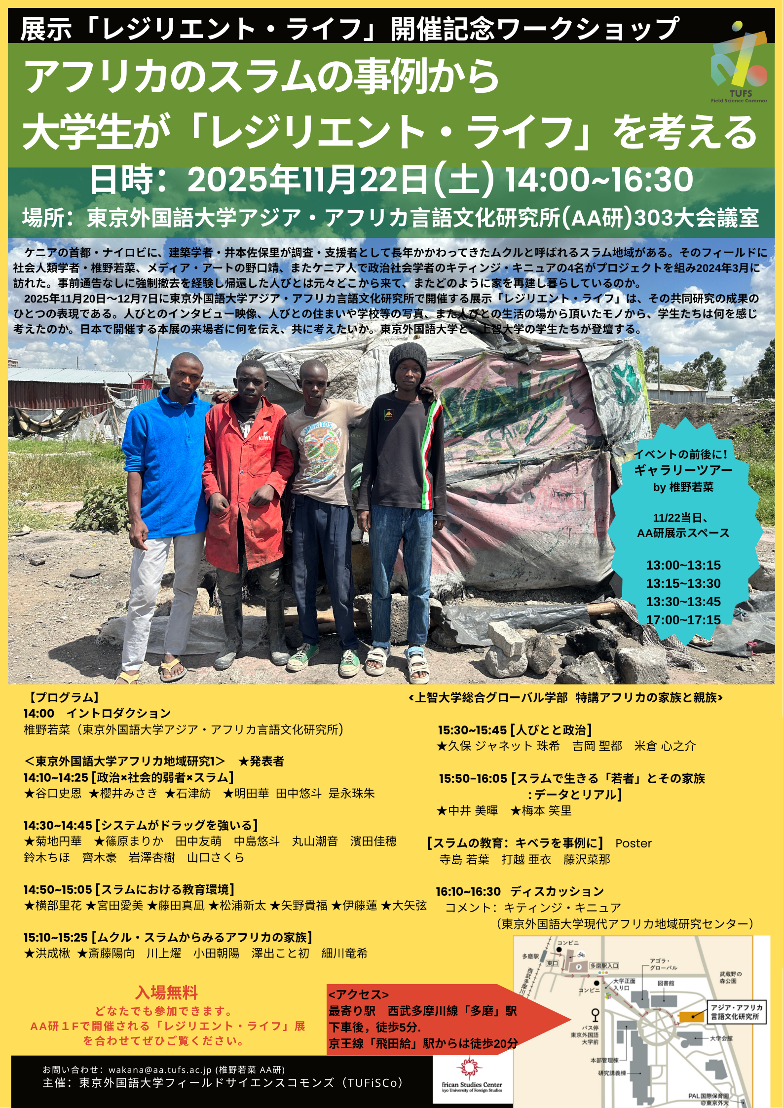 協賛・後援・協力:現代アフリカ地域研究センター、NPO法人 FENICS