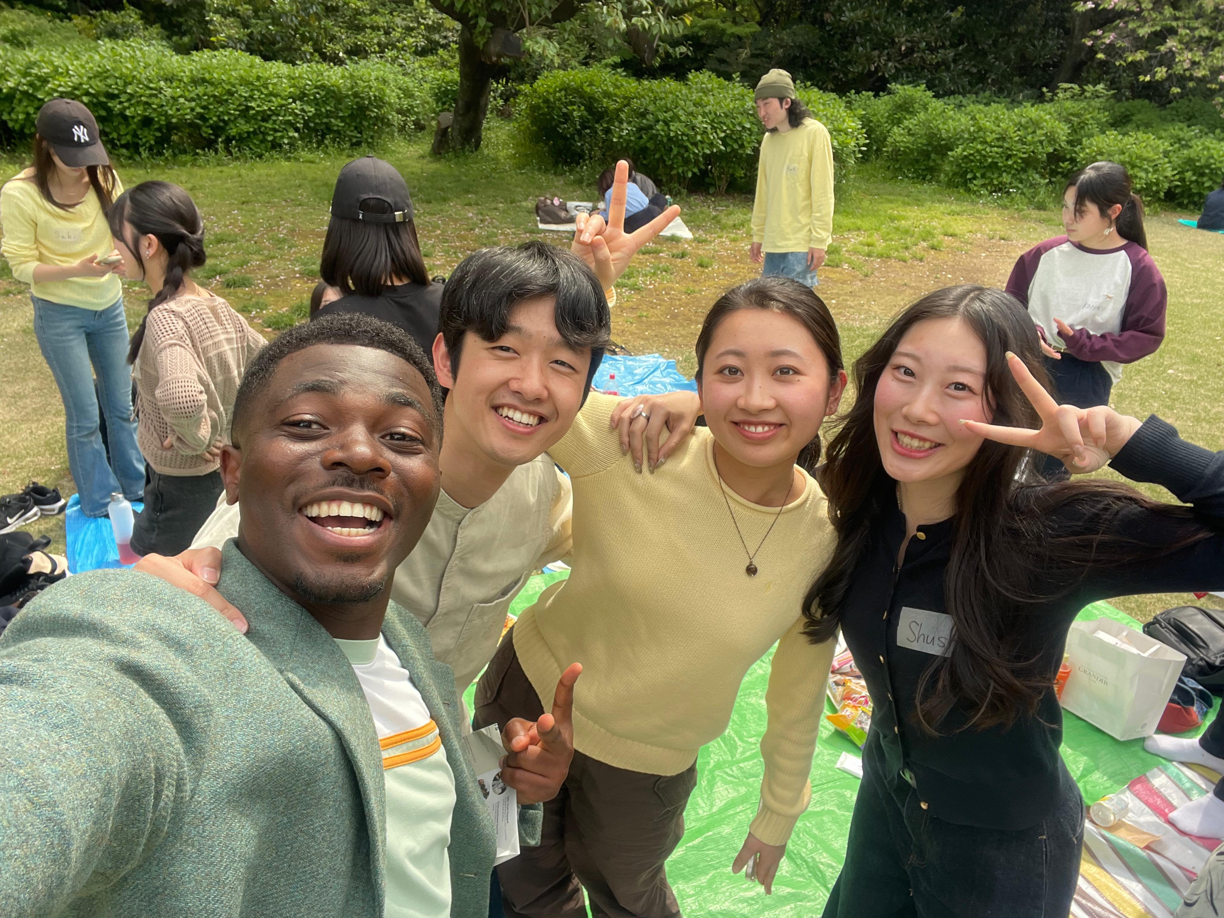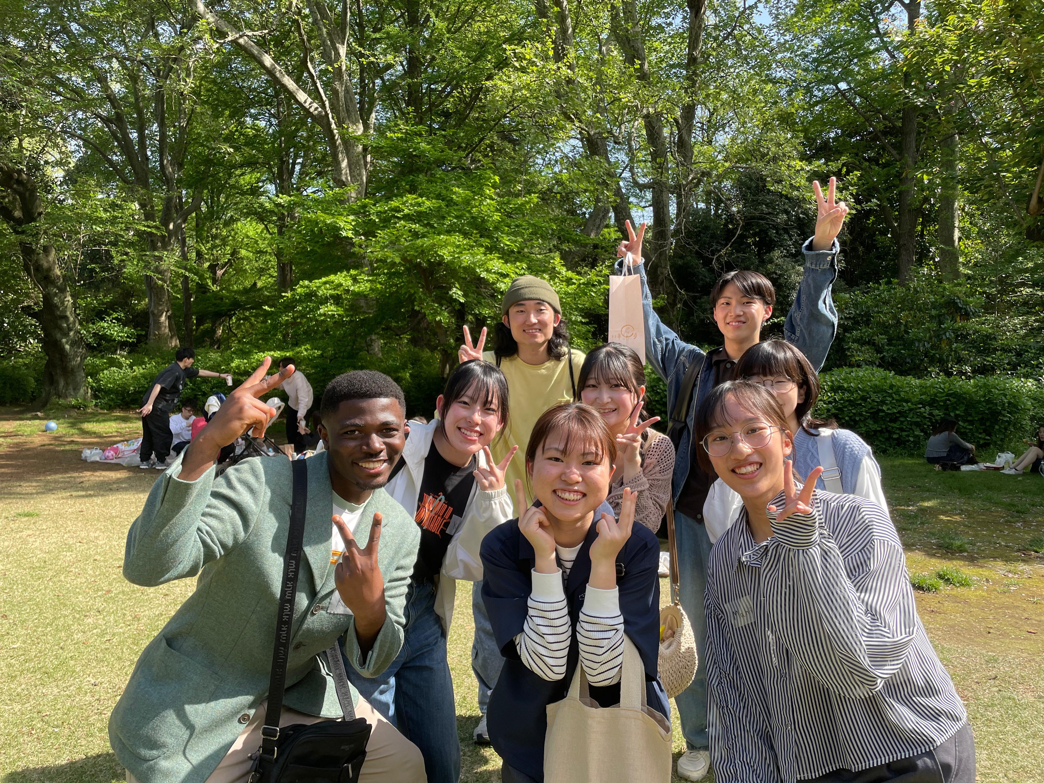新入生・在校生・留学生・先生で、ゆるっと交流しましょう!との声がけのもと、新宿御苑(https://maps.app.goo.gl/mhckz3TYiFq8H5HC7?g_st=ic)で開催されました。