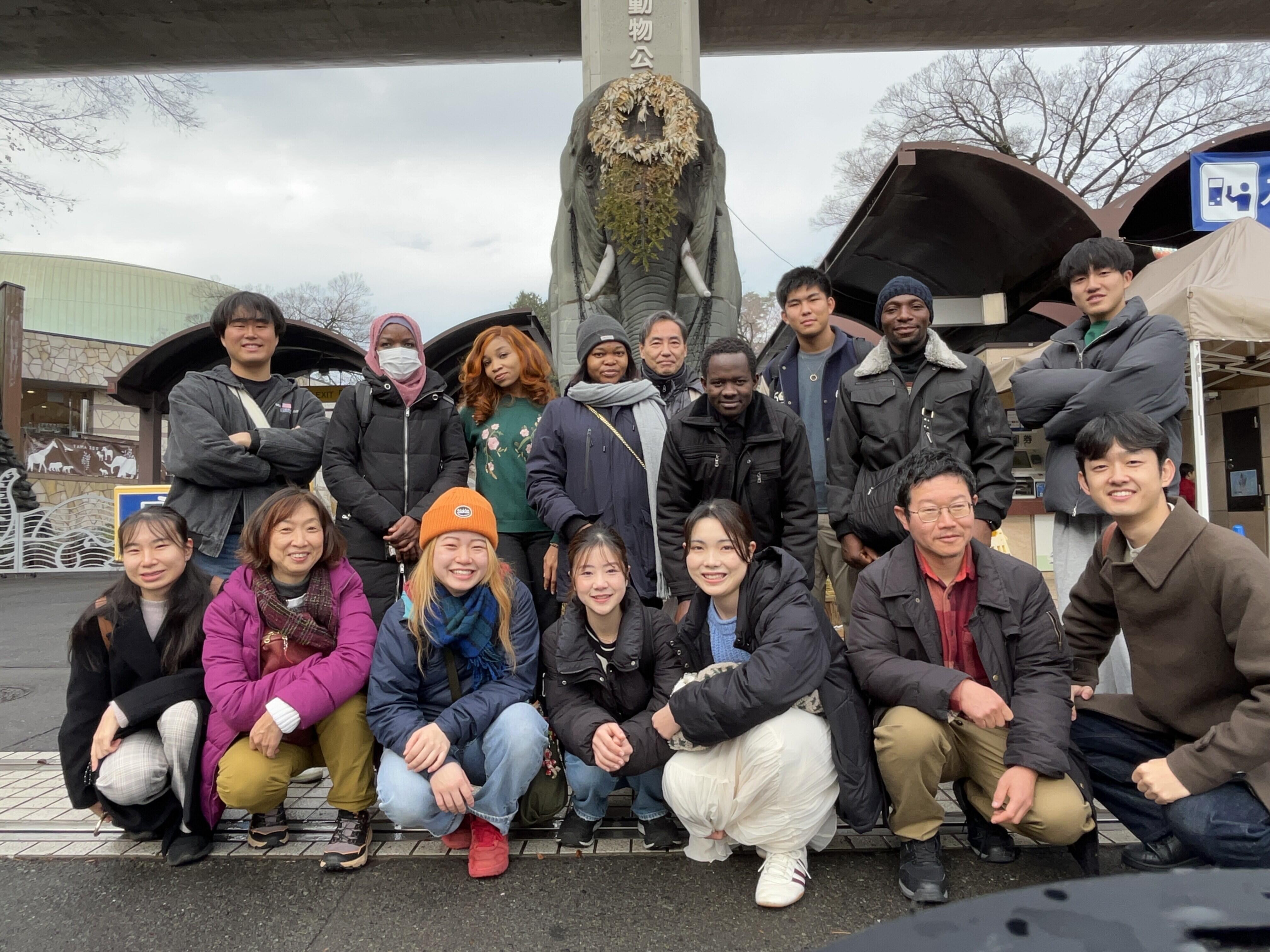 12月21日(日)に、アフリカ専攻の教員・坂井真紀子(大学院総合国際学研究院/教授)先生、大石高典(大学院総合国際学研究院/准教授)先生主催によるアフリカ地域専攻1年生のオリエンテーションが多摩動物公園にて実施されました。当日小雨の降るあいにくの天気でしたが、アフリカからの留学生5名を含む18人が参加、親睦をはかりました。