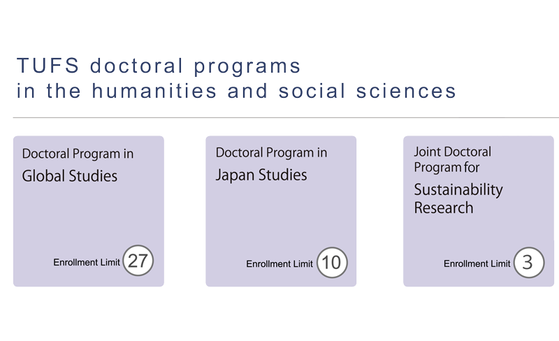 TUFS currently offers three doctoral programs: the Doctoral Program in Global Studies, the Doctoral Program in Japan Studies, and the Joint Doctoral Program for Sustainability Research (JDPSR).