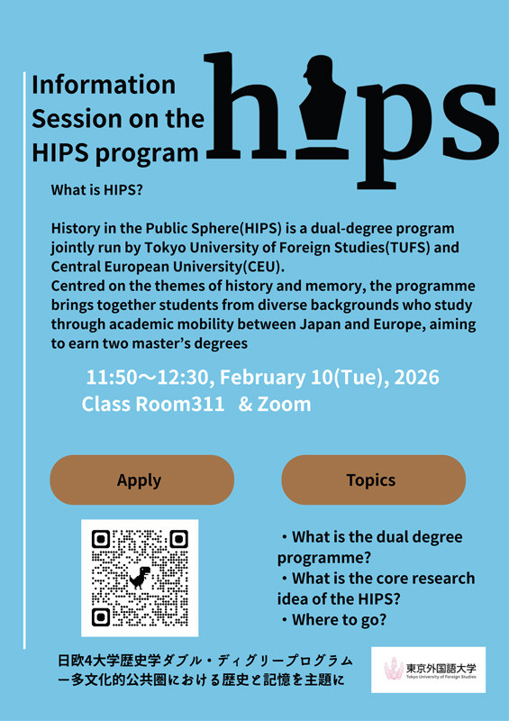 HIPS February Information SessionJanuary 20, 2026 Date 11:50-12:30, February 10 (Tue), 2026 Venue Class Room 311 & Zoom Language Japanese