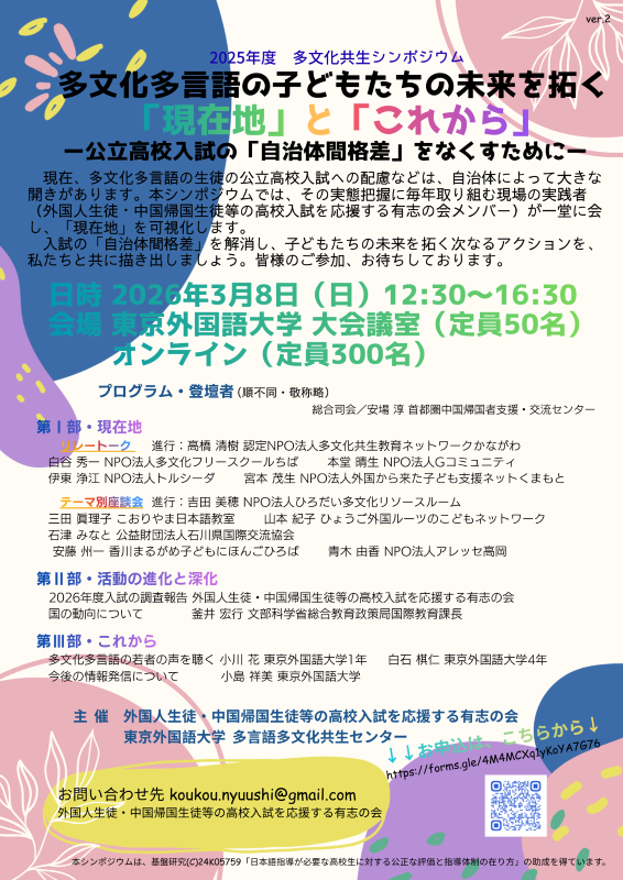 (2026年2月27日18時07分受付終了) - 本シンポジウムは、基盤研究(C)24K05759「日本語指導が必要な高校生に対する公正な評価と指導体制の在り方」の助成を得ています。