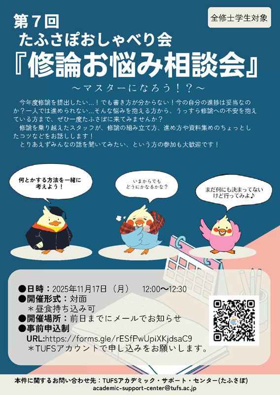 第7回たふさぽおしゃべり会「修論お悩み相談会」(全修士学生対象)