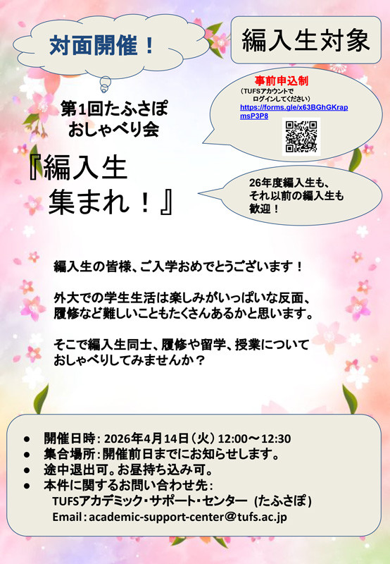 第1回たふさぽおしゃべり会「編入生集まれ!」(編入生対象)
