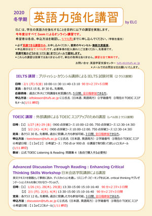 ELCは、学生の英語力を強化することを目的に以下の講習を実施します。
