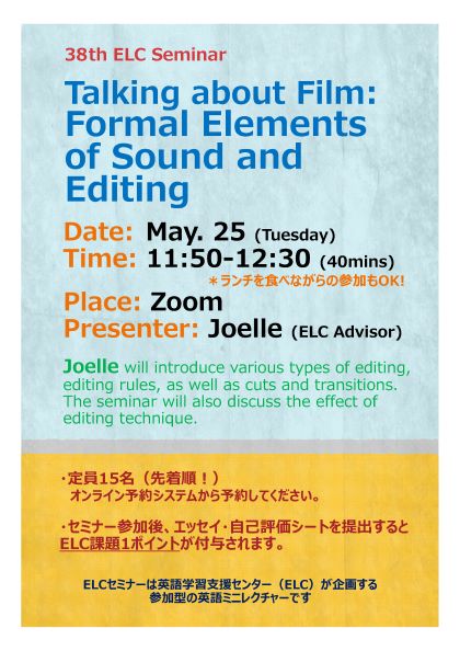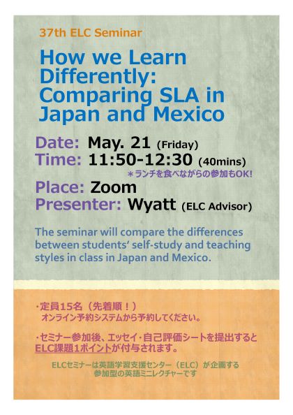 第37回ELCセミナー:5月21日(金)11:50-12:30