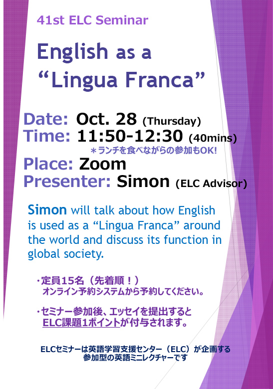 第41回ELCセミナー:10月28日(木)11:50-12:30