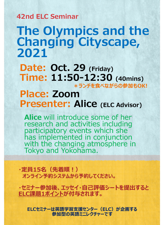 第42回ELCセミナー:10月29日(金)11:50-12:30