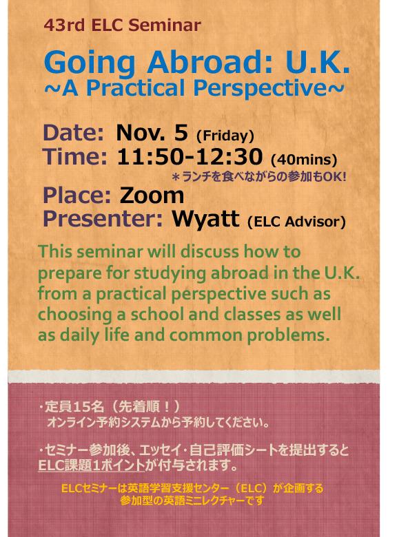 第43回ELCセミナー:11月5日(金)11:50-12:30
