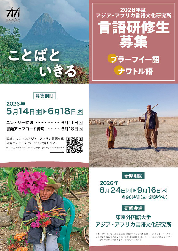 【学部・大学院】2026年度言語研修(ブラーフイー語、ナワトル語)履修ガイダンスを開催します