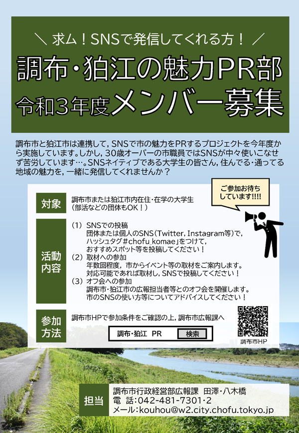 調布・狛江の魅力PR部 令和3年度メンバー募集について