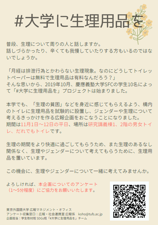 「#大学に生理用品を」企画のお知らせとアンケート協力のお願い