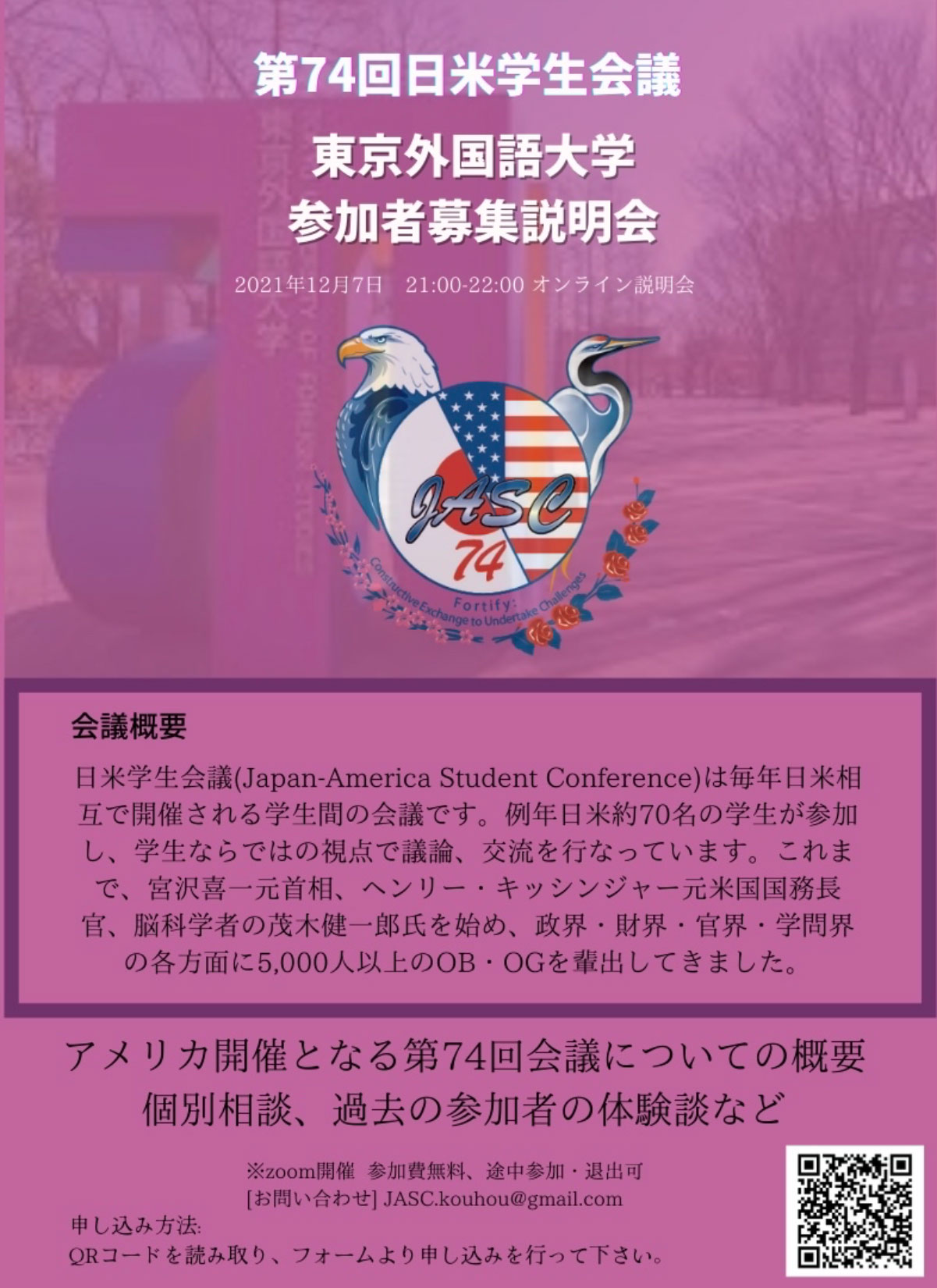 第74回日米学生会議 説明会 at 東京外国語大学 のお知らせ