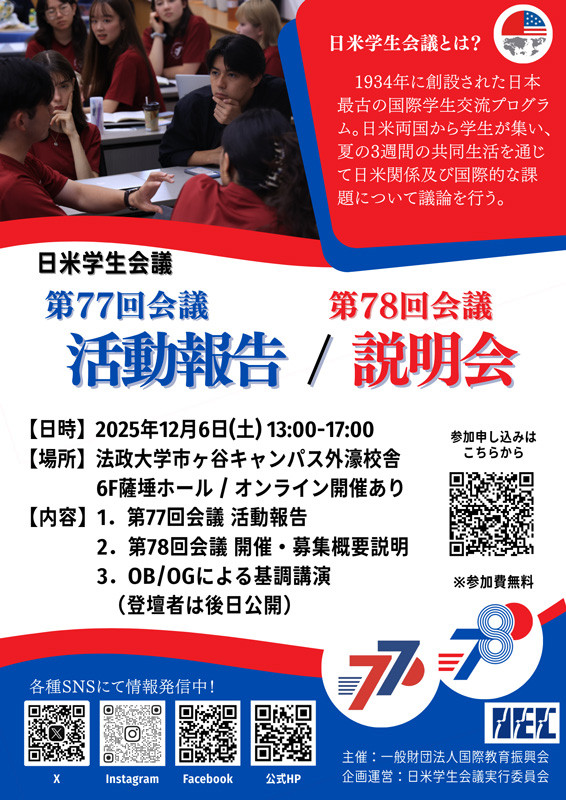 第78回日米学生会議(JASC)参加者募集のお知らせ