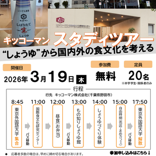 【満員御礼のため募集締切】キッコーマンスタディーツアー(3/19(木)実施)