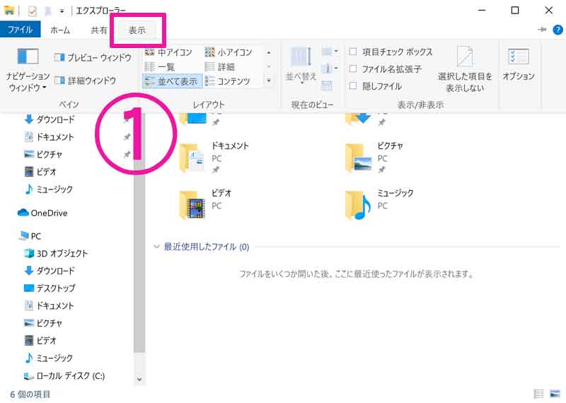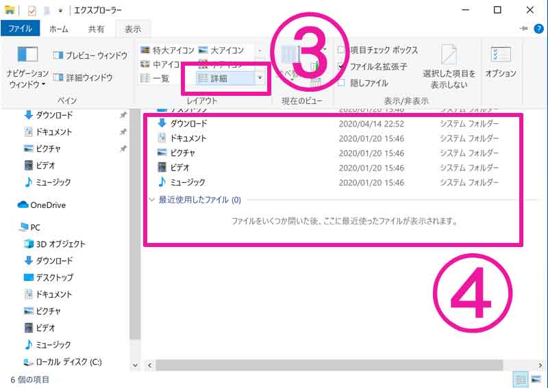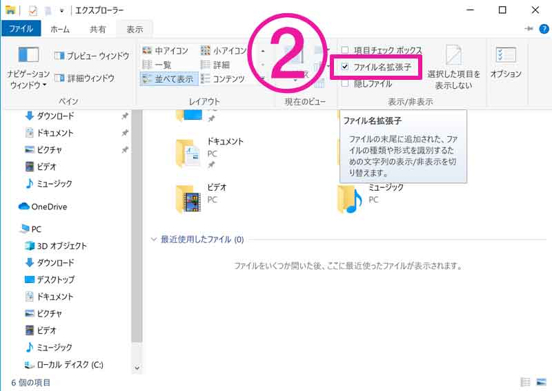 エクスプローラーの「表示」設定を,授業を受ける上で都合の良いように変更します.