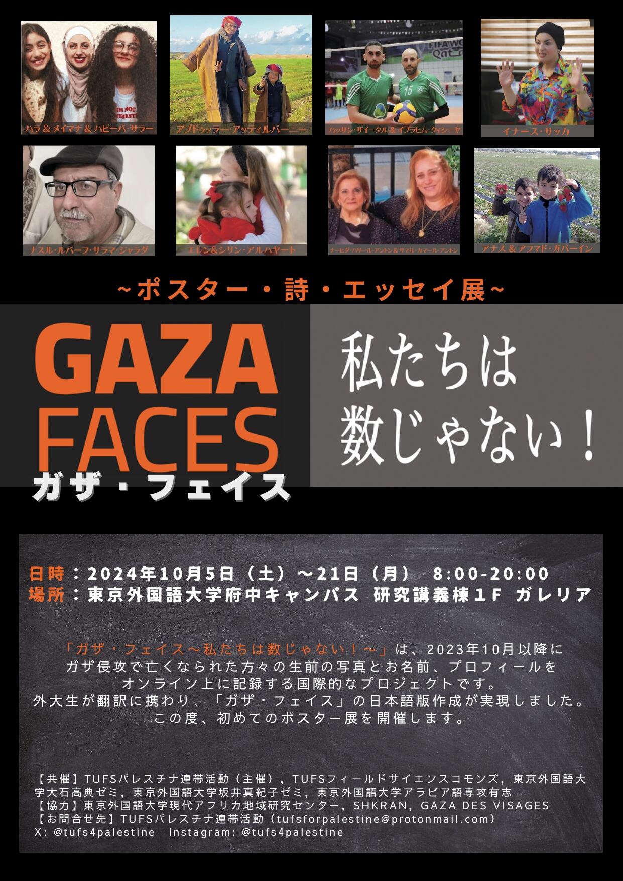 Oct 5 (Sat) - 21(Mon) 2024, Exhibition "GAZA FACES, NOT JUST NUMBERS!"