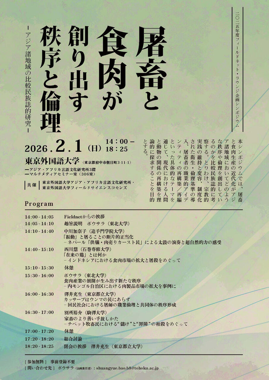 Fieldnet Lounge 2025 "The Order and Ethics Created by Slaughter and Meat Consumption: A Comparative Ethnographic Study of Asian Regions"