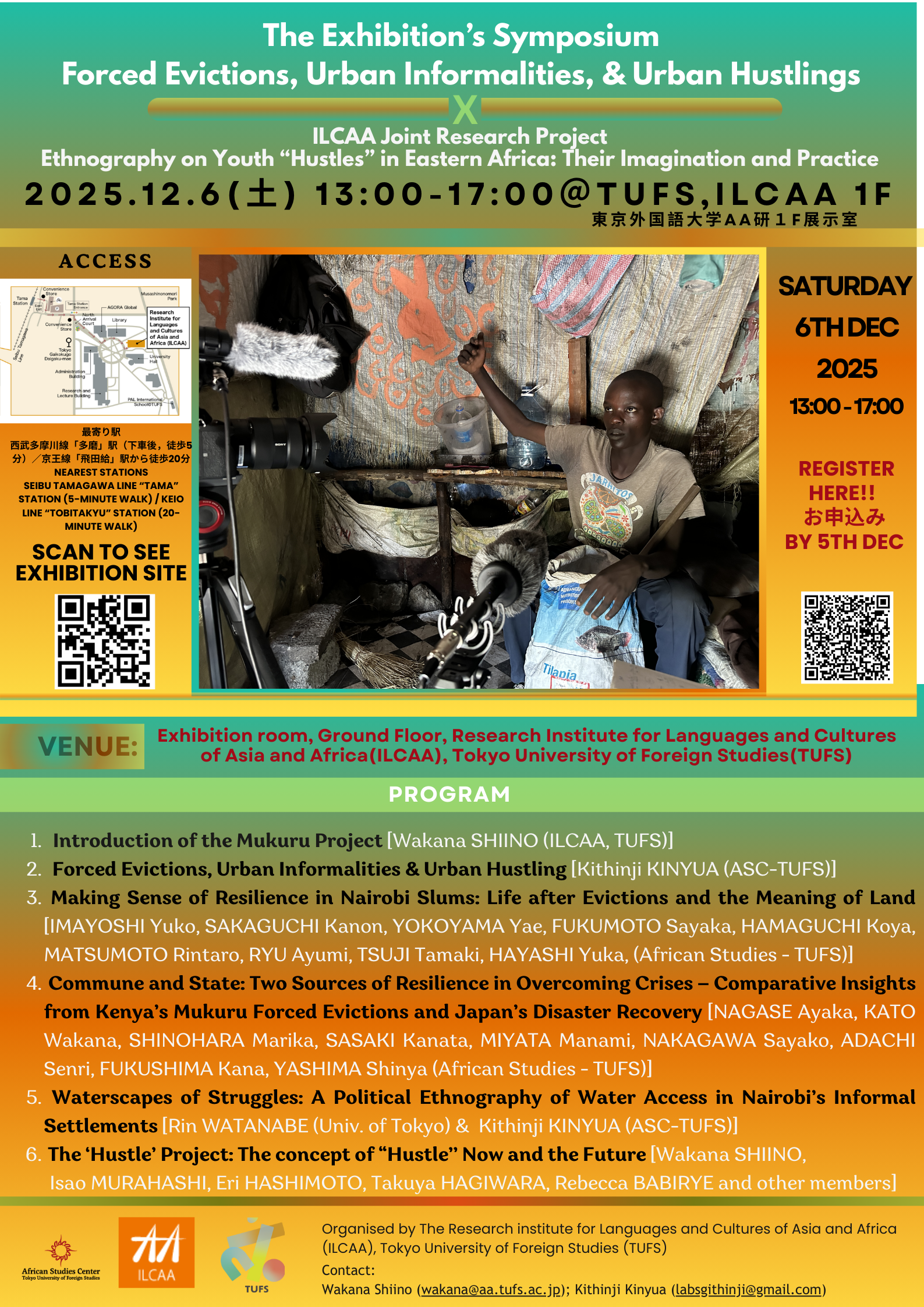 展覧会記念シンポジウム「強制立ち退き、都市のインフォーマリティ、そして都市の 'hustling'」/2025年度第2回「東部アフリカにおけるʼhustleʼする若者たちの民族誌:その想像力と実践力」共同利用・共同研究課題研究会