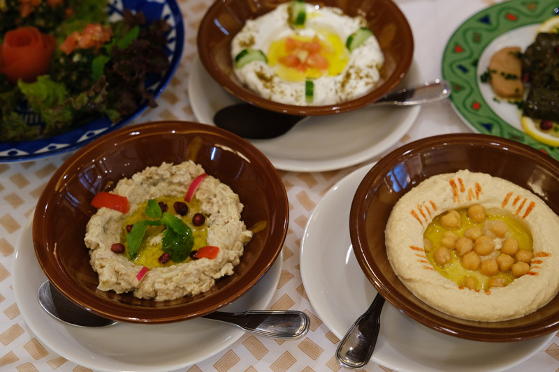 日本では最初にすべての料理がぱっと出てくることが多いですが、シリアやレバノンでは最初に前菜だけが出て、その後に主菜が出てきます。量自体は結構多いです。夜までにお腹いっぱいになるように食べる習慣があるようです。