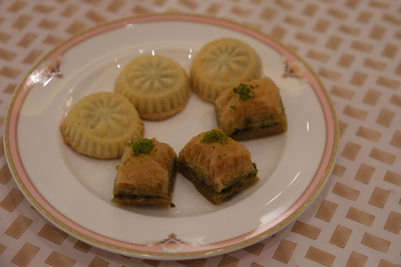 牛乳のプリンに蜂蜜のパイ、そしてメロンが添えられています。シリアのデザートには、ローズウォーターやピスタチオがよく使われていて、香りや彩りがとても豊かなんですよ。ちなみに、シリアでは米は日本のような主食ではなく、野菜の一種として扱われることもあるんです。食文化の違いって面白いですよね。