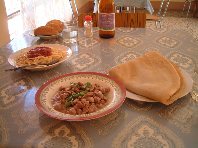 エチオピアのキリスト教徒は他のキリスト教徒とは異なる習慣があります。特徴的なのは、聖職者の場合は年間約250日、一般信徒でも180日の「断食」をすることです。「断食」といっても何も食べないわけではなく、「肉や卵、乳製品などの動物性食品を食べない」という「精進」のようなものです。そのため、エチオピアのキリスト教徒の食文化では、豆や野菜を使った料理のバリエーションが豊富で、欧米のビーガンやベジタリアンからも注目されています。