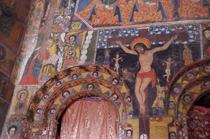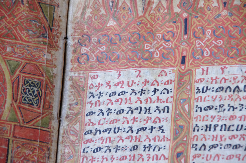 エチオピアのキリスト教徒は、エチオピア文字という独自の文字を使用しています。エチオピア文字は古代に南アラビア(現在のイエメン)から伝わってきた文字を基にしています。古代南アラビア文字は子音を表す文字しかありません。現在のアラビア文字と同様に、読み手が母音を補って読む必要があります。しかしエチオピア文字は字形を変化させることにより、子音+母音の組み合わせになっています。母音は7つ、子音は30以上あるので、文字数は全部で200以上になります。