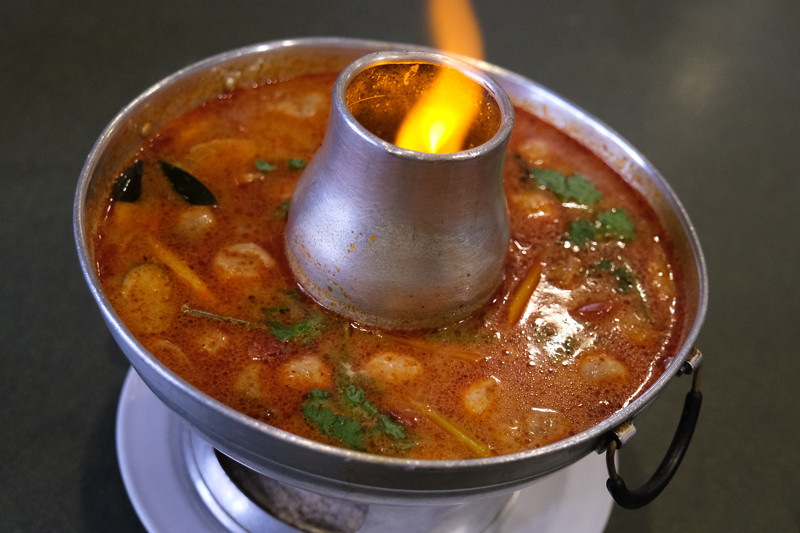 そして最後は、タイ料理を代表するスープ「トムヤムグン」です。「グン」はエビのこと。レモングラス(タクライ)やカフィアライムリーフ(マクルート)の葉などのハーブを使い、ナムプリックパオというペーストに唐辛子、レモン(マナーオ)やココナッツミルクを加えることで、スパイシーさの中にまろやかさも感じられる、複雑で奥深い味わいのスープです。