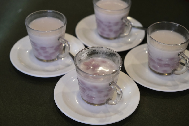 タイのデザートはこのようにもち米やココナッツミルクを使ったものが多くて、温かいものもあれば、冷たいものもあります。他にも、ドリアンをもち米にのせて、ココナッツミルクをかけたデザート(カーオニアオ・トゥーリアン)やマンゴをのせたバージョンもあります。タイのスイーツはバリエーションが豊富です。さあ、召し上がってください。