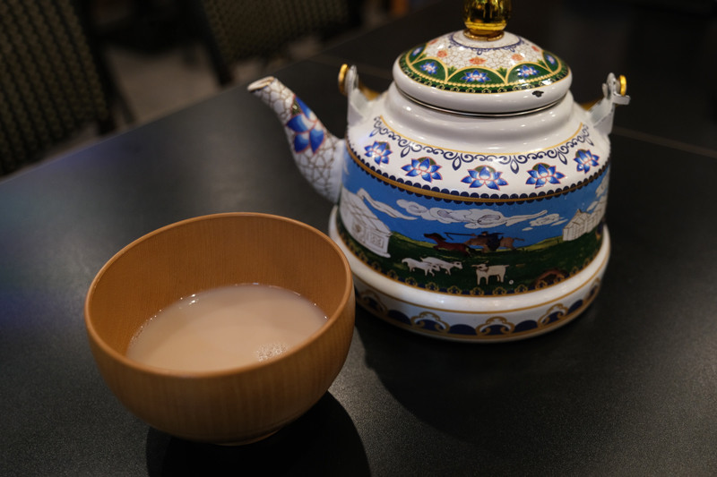 塩が入ったミルクティーです。モンゴルの多くの地域では塩を入れます。モンゴルでは「スープ」に近い感覚で飲まれます。