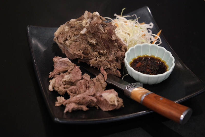 「チャンスンマハ」と言います。モンゴル語で「茹でた肉」という意味です。このお店では食べやすいように少し切り分けられていますが、本来は羊を丸ごと一頭さばき、大きな塊のまま皿に盛り付けて出されます。現地では、各自がマイナイフを持っていて、大きな塊から自分でお肉を削ぎ落としたり、骨からこそげ取ったりして食べます。実はおもてなしの作法もあって、一番脂の乗った「しっぽ」などの美味しい部位は、大切なお客さんに真っ先に出すのが伝統なんですよ。