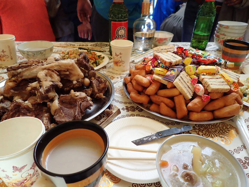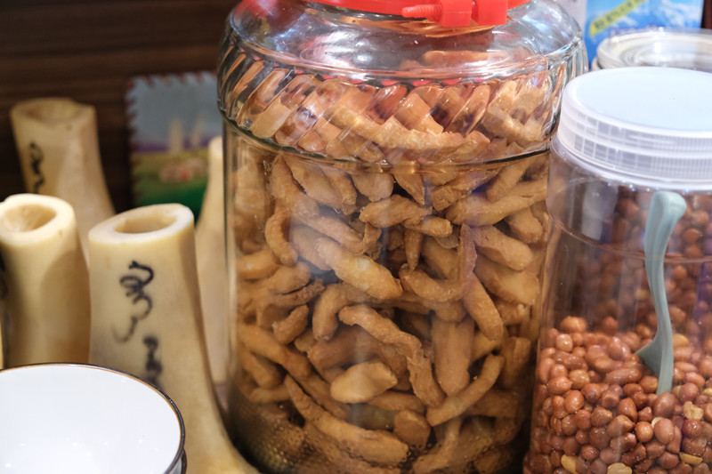 骨の周りの肉が一番美味しいですからね。現地では1〜2時間もあれば、生きていた羊が目の前でこのお料理になって出てきます。味付けも、モンゴル国ではシンプルに塩茹でしただけのものをそのまま食べることが多いですが、内モンゴルではこちらのお店のように、特製のタレにつけて食べる文化が発達しています。先ほどのボーズも、モンゴル国ではケチャップをつけたりします。