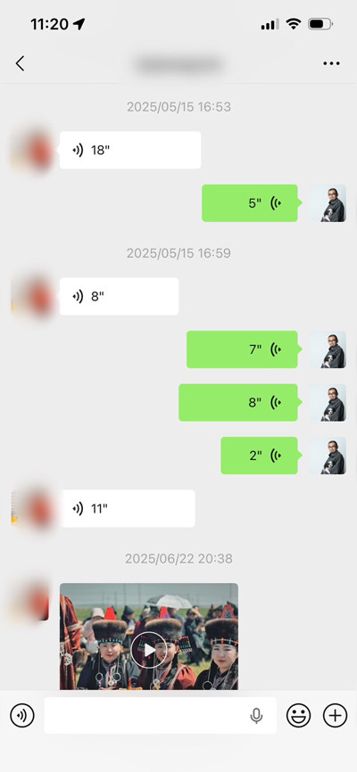 実は、彼らは自分たちの言葉を文字で書き表す習慣がほとんどありません。伝統的なモンゴル文字は古い時代の発音に基づいているため、現在のブリヤート語の音を正確に写し取ることが難しいんです。そこで面白いのが、WeChat(SNS)でのボイスメッセージの活用です。彼らは文字を打つ代わりに、音声を録音して送り合います。これなら文字化できない自分たちの言葉をそのまま伝えられますし、感情も乗ります。