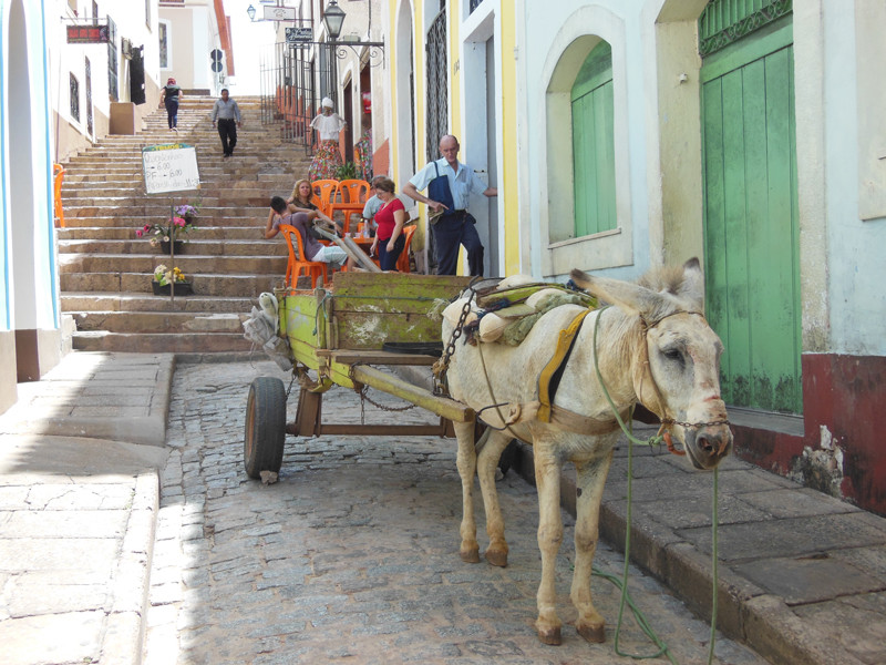 ブラジル、石畳をゆくロバ