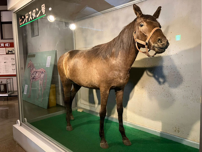 こうした馬を通じて結ばれた日本とインドとの縁は、現代にも続いています。競走馬・軽種馬の一大生産地である北海道日高地方の浦河町には、ヒンドスタン号の剥製が展示されています。