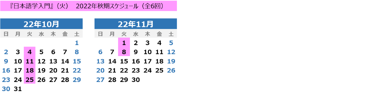 ※2022年11月23日(水)、2022年12月28日(水)、2023年1月4日(水)は休講 - 開講日・時間:水曜日 日本時間 20:00~21:30(90分)